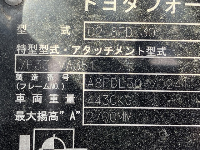 Xe nâng dầu Nhật Bãi 3.0T, Toyota 02-8FDL30 hàng đã qua sử dụng (Nhật Bản)