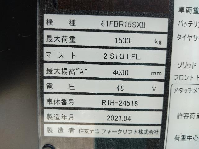 Xe nâng điện cũ đứng lái 1.5T, Sumitomo 61FBR15SXII, hàng đã qua sử dụng (Nhật Bản)