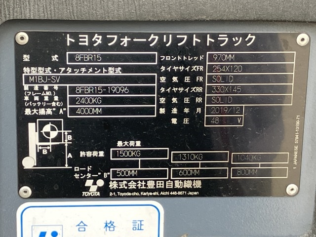 Xe nâng điện cũ đứng lái 1.5T TOYOTA 8FBR15, hàng đã qua sử dụng (Nhật Bản)