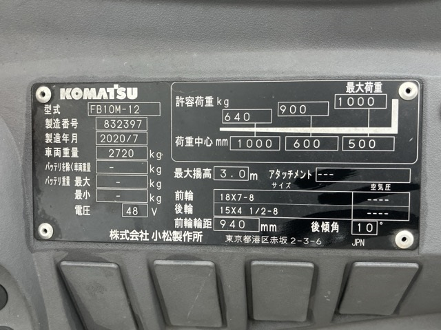 Xe Nâng Điện cũ ngồi lái 1.0T, Komatsu FB10M-12 hàng Nhật Bãi chưa qua sử dụng tại Việt Nam