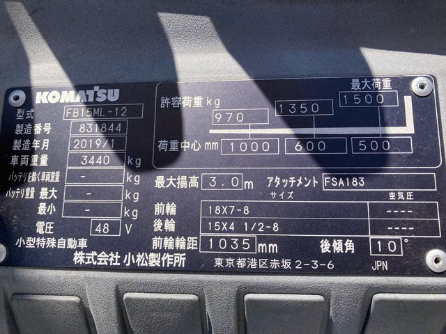 Xe Nâng Điện cũ ngồi lái 1.5T, Komatsu FB15ML-12 hàng Nhật Bãi chưa qua sử dụng tại Việt Nam