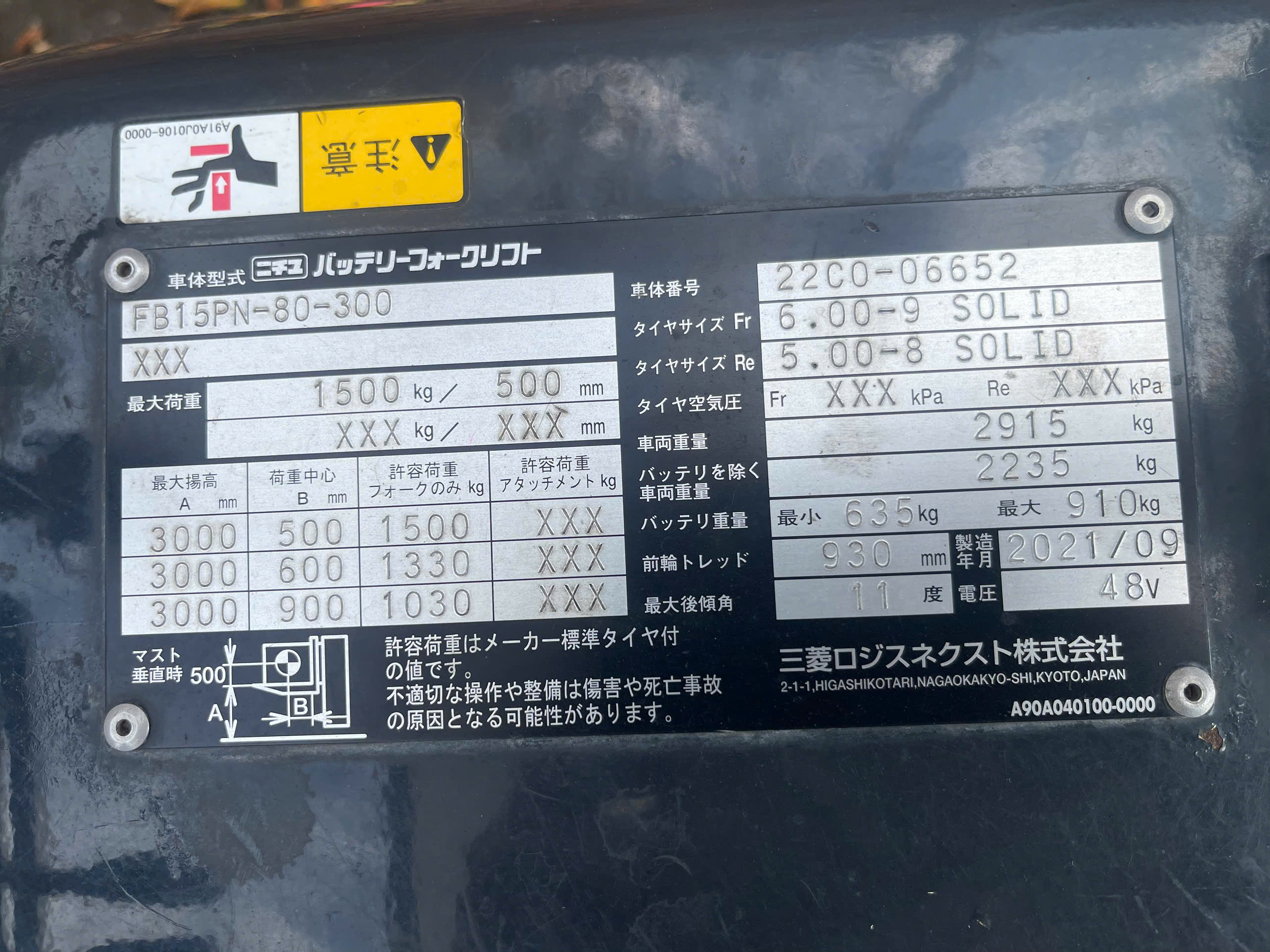 Xe Nâng Điện cũ ngồi lái 1.5T, Nichiyu FB15PN-80-300 hàng Nhật Bãi chưa qua sử dụng tại Việt Nam