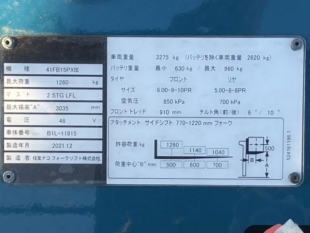 Xe nâng điện cũ ngồi lái 1,5T SUMITOMO 41FB15PXIII, hàng đã qua sử dụng (Nhật Bản)