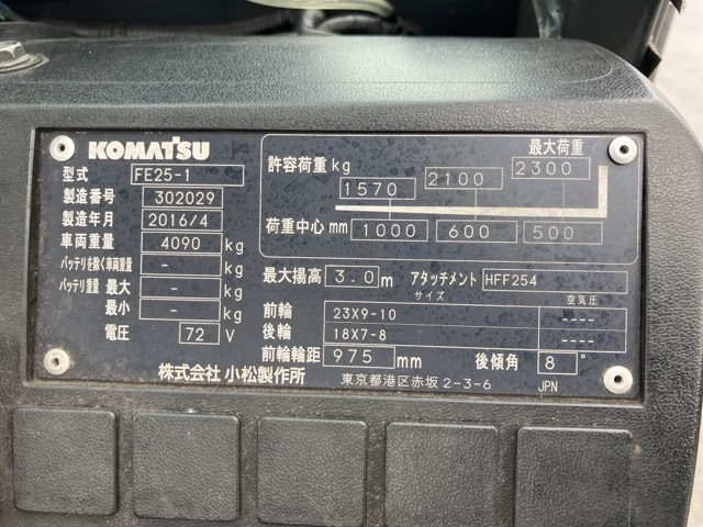 Xe nâng điện cũ ngồi lái 2.5T, KOMATSU FE25-1, hàng đã qua sử dụng (Nhật Bản)