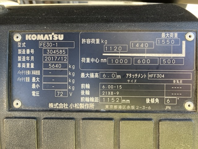 Xe Nâng Điện cũ ngồi lái 3.0T, Komatsu FE30-1 hàng Nhật Bãi chưa qua sử dụng tại Việt Nam