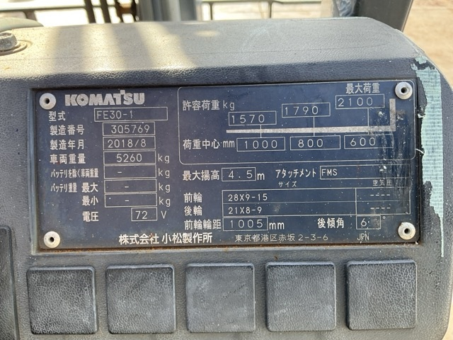 Xe Nâng Điện cũ ngồi lái 3.0T, Komatsu FE30-1 hàng Nhật Bãi chưa qua sử dụng tại Việt Nam