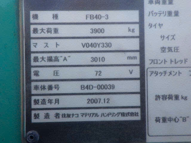 Xe nâng điện cũ ngồi lái 4.0T, KOMATSU FB40-3, hàng đã qua sử dụng (Nhật Bản)